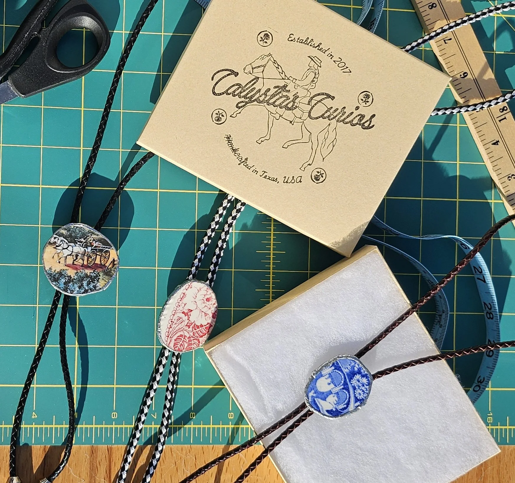 The mail that you will receive is formatted like a vintage newspaper advertisement - even printed on recycled newspaper paper! It includes hand-drawn illustrations and a little note to update you on the goings-on of Calysta’s Curios.
