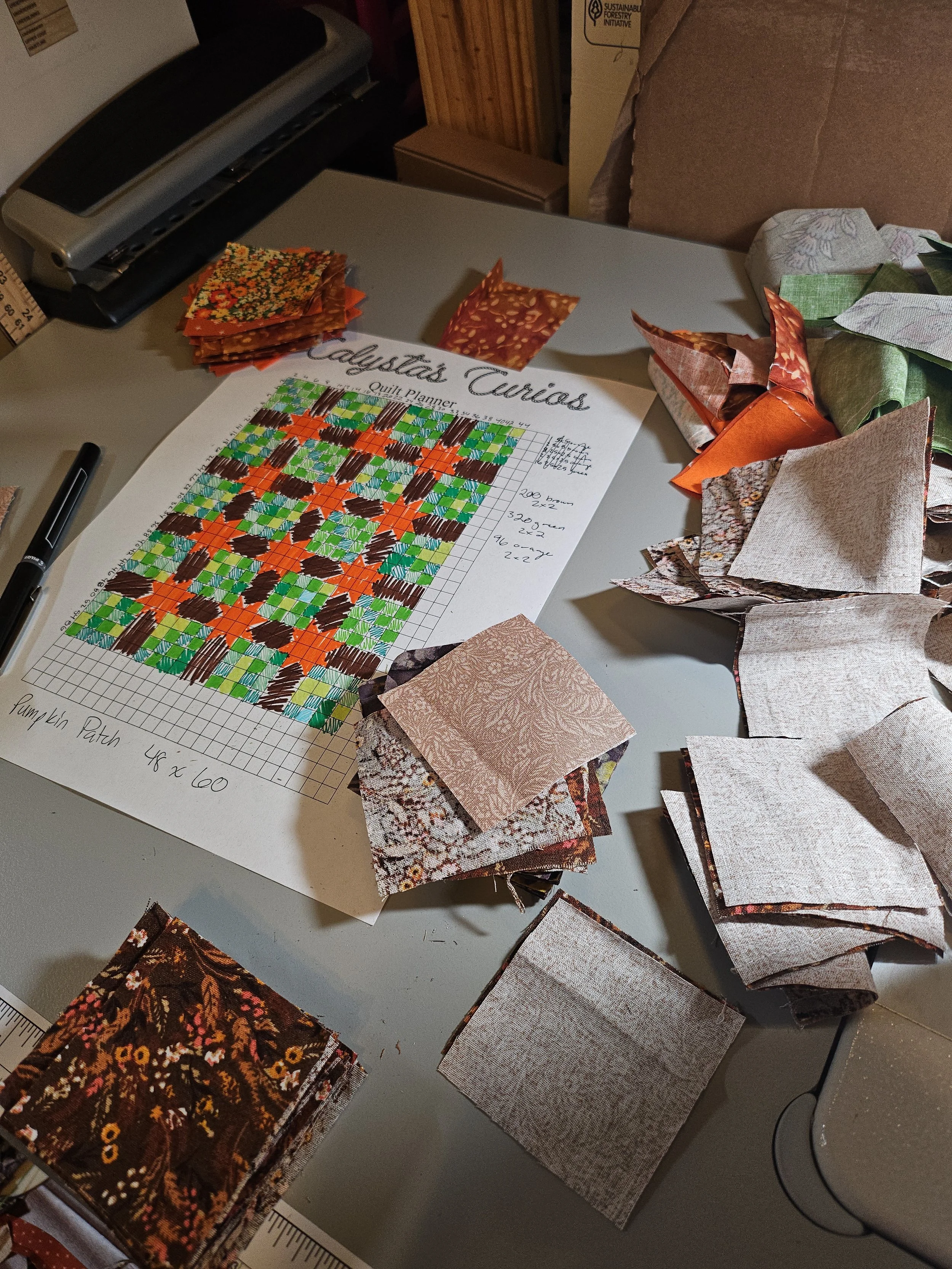 Quilt planner guide and cut out squares - this is the first quilt that I have made for myself!
